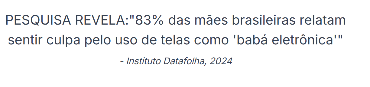 Entendemos exatamente o que você está passando. Segundo pesquisas recentes, você faz parte de um grupo de 8 em cada 10 mães que vivem esse dilema entre a praticidade das telas e a preocupação com o desenvolvimento dos filhos.